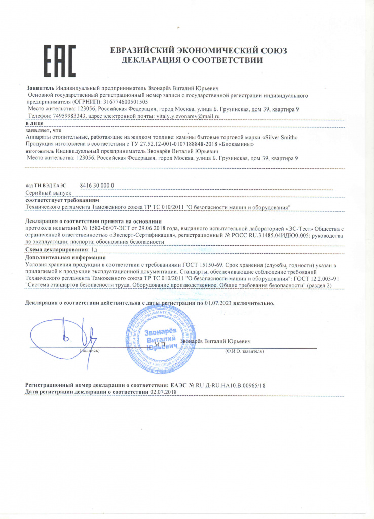 Инструкции, чертежи, документы - Биокамин Silver Smith Emotion Black