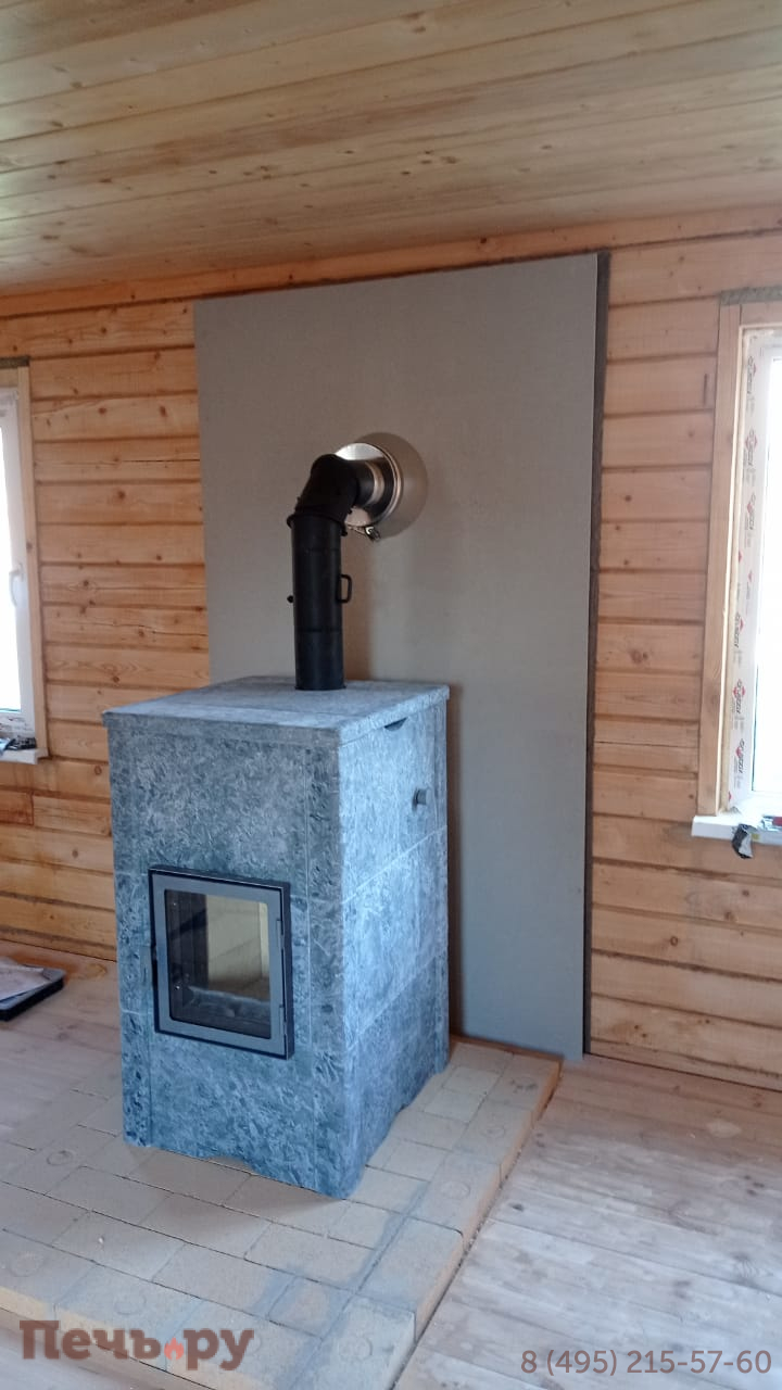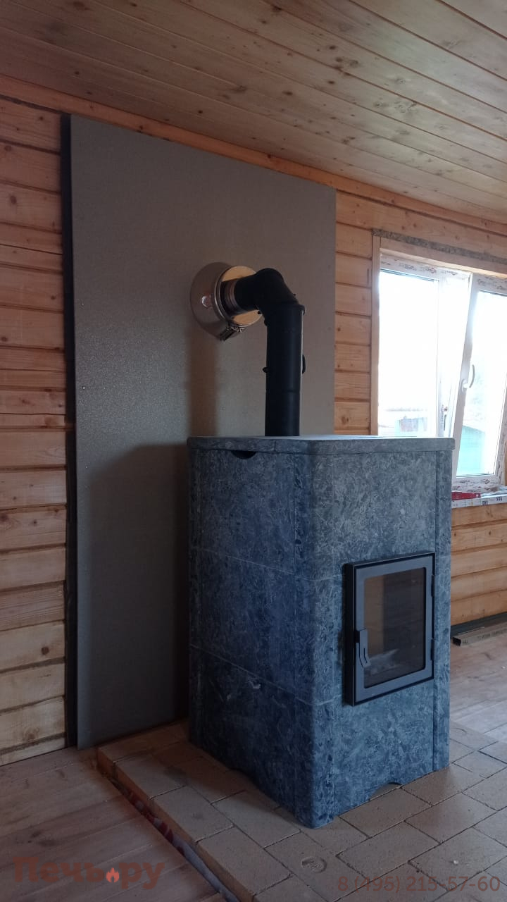 Теплонакопительный камин из талькомагнезита. Вторичный дожиг, чистое стекло.