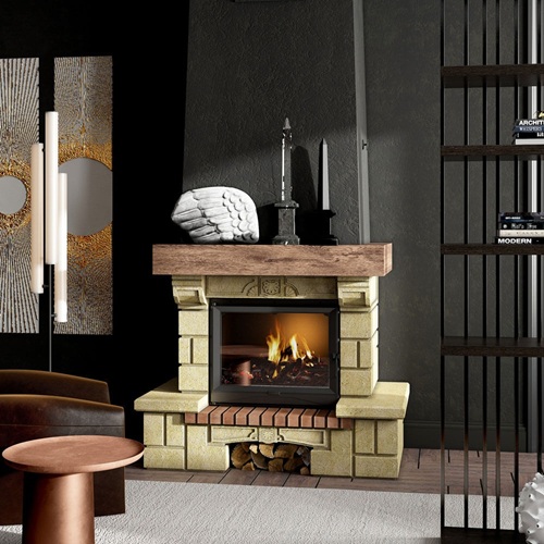 Талькохлорит ценят за способность аккумулировать тепло и отдавать его мягко и равномерно. После одной топки камин может поддерживать комфортную температуру до 10–12 часов. Камень имеет природную фактуру и спокойные оттенки серого, зелёного или голубоватого тона. Он хорошо вписывается в минимализм и скандинавский стиль, где ценятся природные материалы и простота форм.